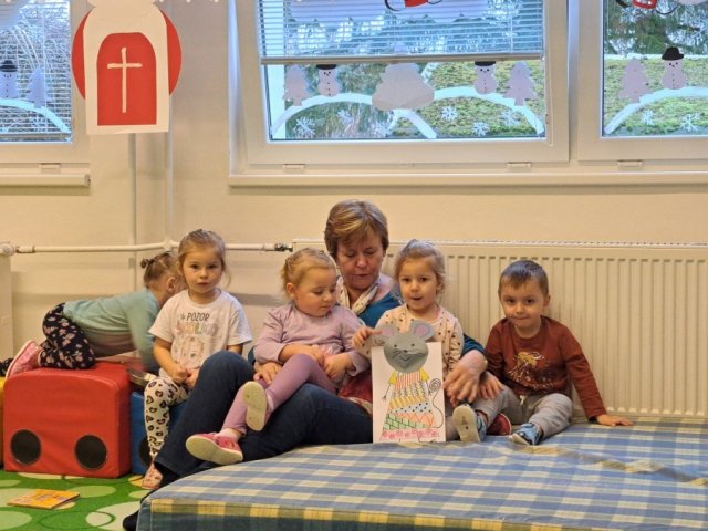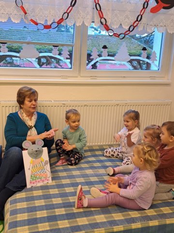 Paní učitelka dětem přečetla pohádkový příběh „O myšičce“, prostřednictvím kterého si děti měly možnost vychutnat poslech čteného textu a rozvíjet svou fantazii i soustředění.