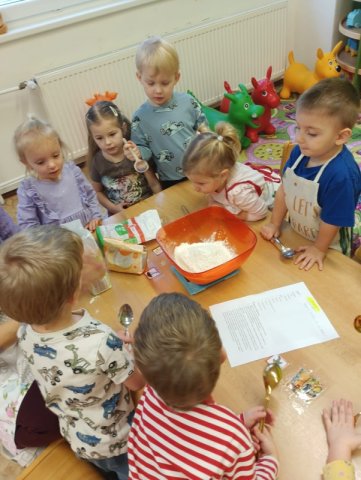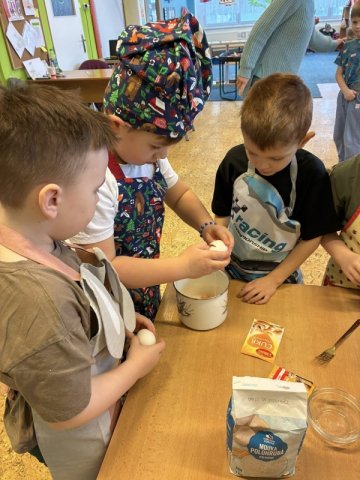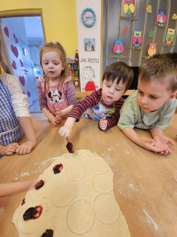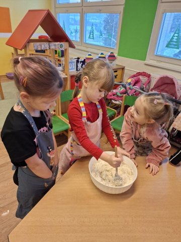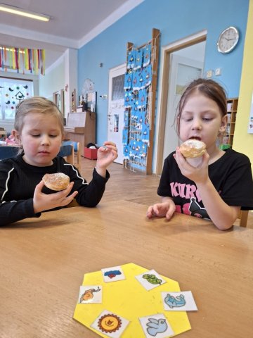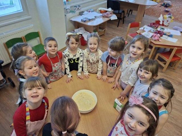 V rámci masopustního týdne jsme si s dětmi užili voňavé a chutné dopoledne plné tradičních dobrot. Celou školkou se linula vůně pečených koblih s marmeládou a také smažených tvarohových koblížků. Děti se aktivně zapojily do přípravy – pomáhaly s mícháním těsta, vykrajováním i plněním marmeládou. Povídali jsme si o masopustních tradicích, o tom, proč se v tomto období připravují právě tyto dobroty, a připomněli jsme si, že masopust je časem radosti, veselí a společného setkávání. Společná ochutnávka byla zaslouženou tečkou za krásným masopustním dnem. Radost v dětských očích byla tou největší odměnou.