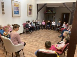 Předškoláčci dnes navštívili knihovnu - paní knihovnice pro nás měla nachystaný moc hezký program - povídali jsme si o tom, jak poznáme, že venku začíná jaro, o oblíbených hrách dětí a taky nás seznámila s hrami, které se hrály dřív - házeli jsme fazolemi/knoflíky na určené místo na zemi, zahráli jsme si sluchovou hru “Žábo, zakuňkej!” Nakonec zbyl čas na to, prohlídnout si knížku dle svého výběru.